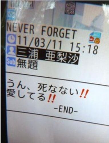 あの日、こんなことがあったのか。もうすぐ一年経つんだな。 大津波直前、緊迫のメール 2012年3月5日(月)9時20分配信 共同通信 地震発生後の午後3時18分、三浦亜梨沙さんが交際相手の男性に送ったメール 東日本大震災の津波に襲われた宮城県南三陸町の防…